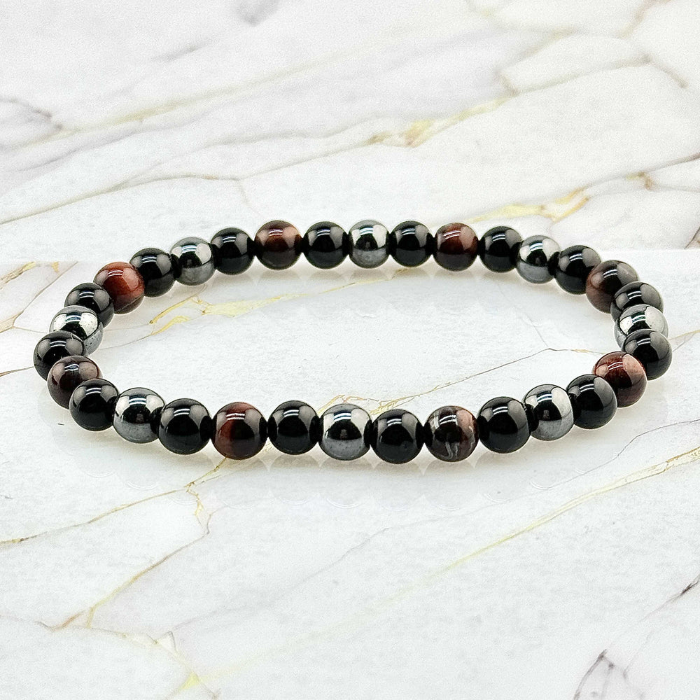 Bracelet "Trio" en Oeil de tigre, Hématite et Obsidienne